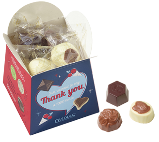 Wir organisieren alles für Sie, von der Auswahl des Schokoladensortiments bis zur Entwicklung der Endverpackung. Wir nehmen Ihnen die Sorgen mit unserem Rundum-Service!